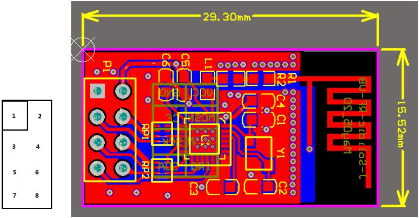 JS-R461為第二代2.4G無線模組(藍(lán)色),其工作在通用頻段2400~2483MHz范圍內(nèi),該模組集成射頻收發(fā),支持三種不同的傳輸數(shù)率250Kbps、1Mbps、2Mbps。操作可用微控制器GPIO接口模擬時序控制模組工作及通信。